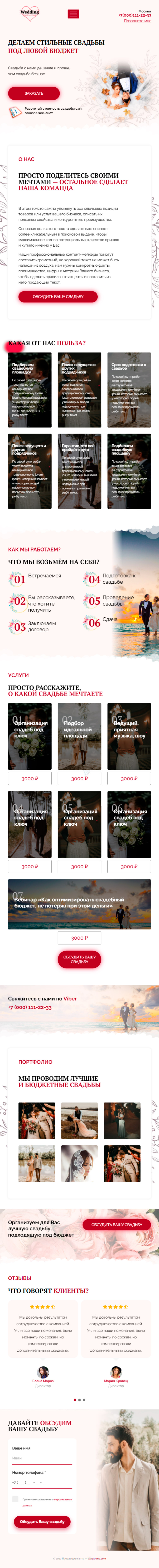 Закажите готовый продающий сайт лендинг #0440206 в Петрозаводске за 1-3 дня «под ключ»: свёрстан, отрисован и готов к рекламе. Тематика шаблона «Организация свадеб».