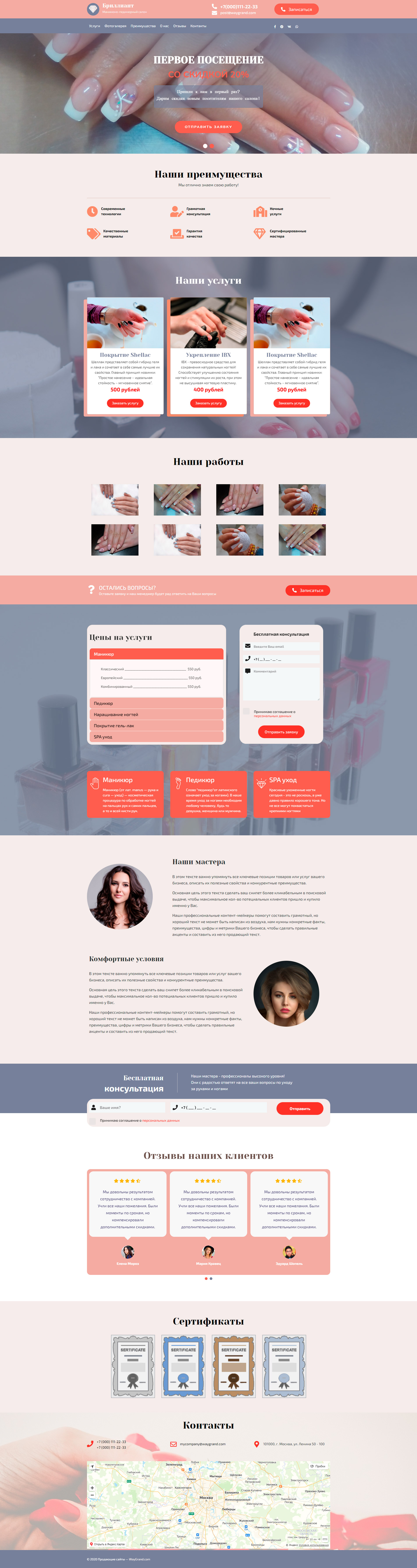 Закажите готовый продающий сайт лендинг #1107201 в Петрозаводске за 1-3 дня «под ключ»: свёрстан, отрисован и готов к рекламе. Тематика шаблона «Салон маникюра и педикюра».