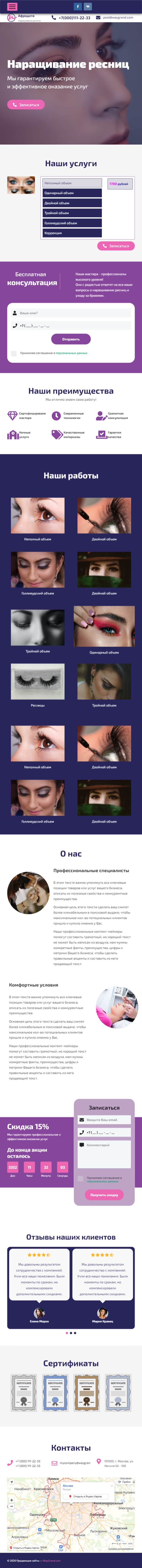 Закажите готовый продающий сайт лендинг #1117201 в Петрозаводске за 1-3 дня «под ключ»: свёрстан, отрисован и готов к рекламе. Тематика шаблона «Наращивание ресниц».