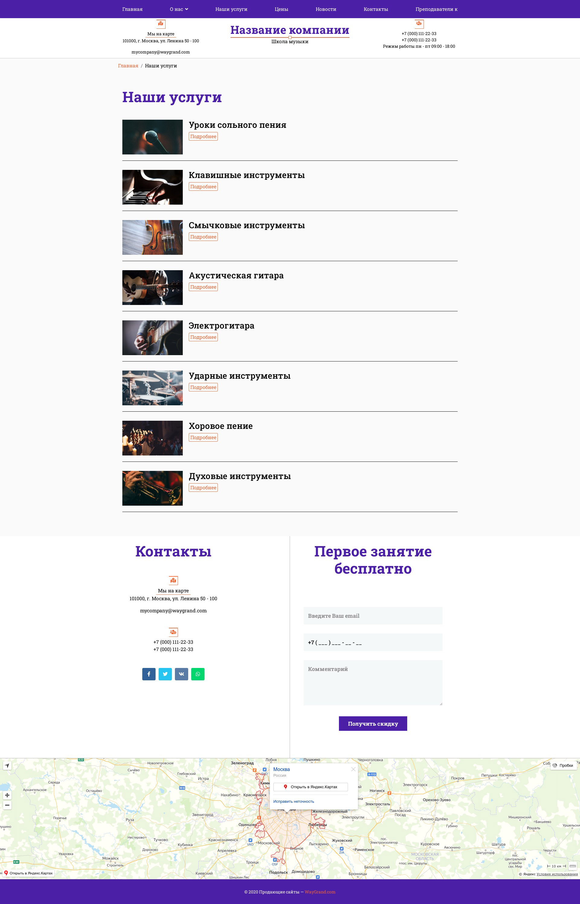 Закажите готовый продающий сайт визитка #1431301 в Петрозаводске за 5-7 дня «под ключ»: свёрстан, отрисован и готов к рекламе. Тематика шаблона «Школа музыки».