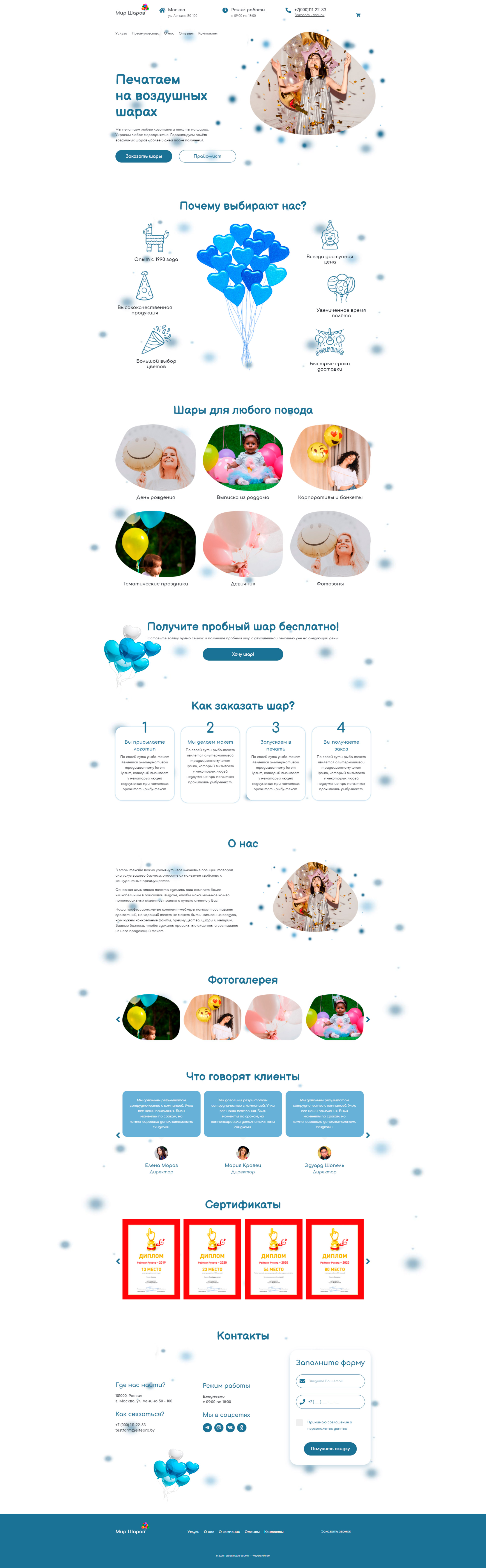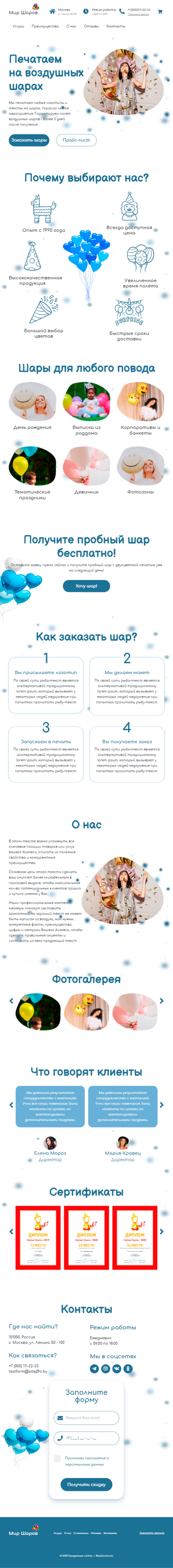 Закажите готовый продающий сайт лендинг #1826202 в Петрозаводске за 1-3 дня «под ключ»: свёрстан, отрисован и готов к рекламе. Тематика шаблона «Печать на воздушных шарах».