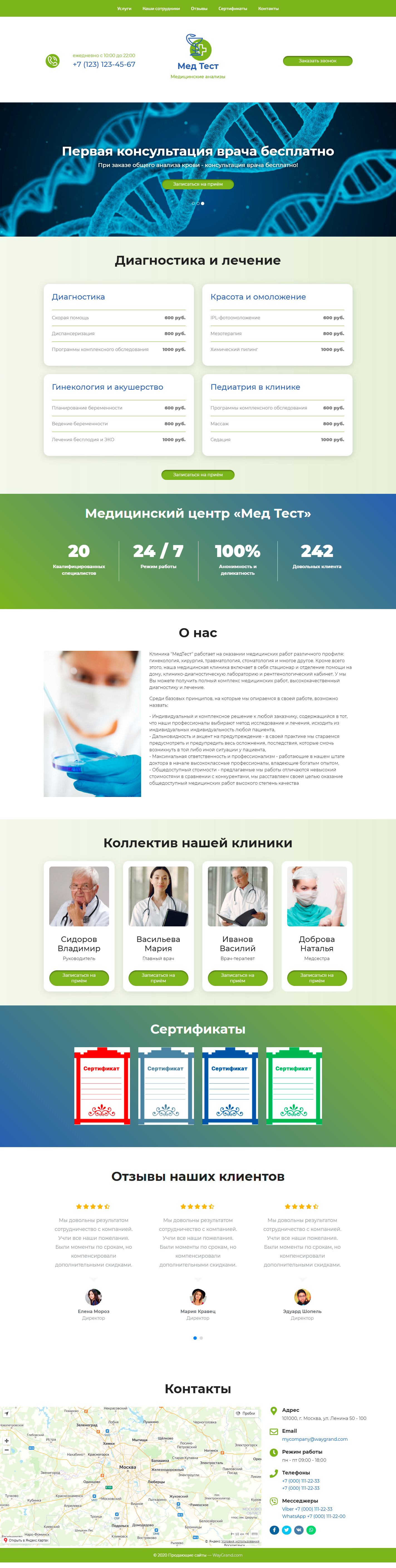 Закажите готовый продающий сайт лендинг #1025201 в Петрозаводске за 1-3 дня «под ключ»: свёрстан, отрисован и готов к рекламе. Тематика шаблона «Медицинские анализы».