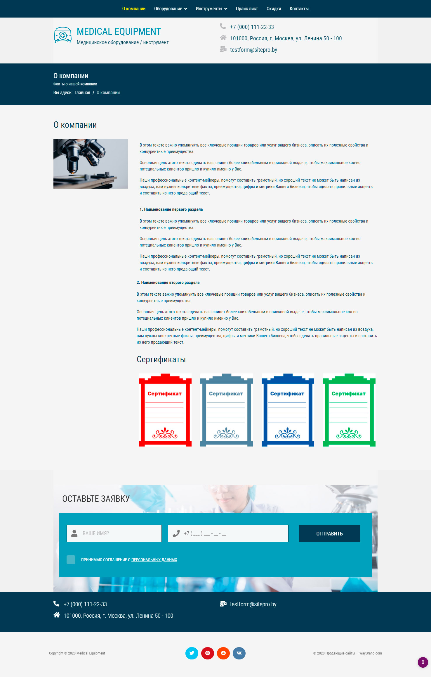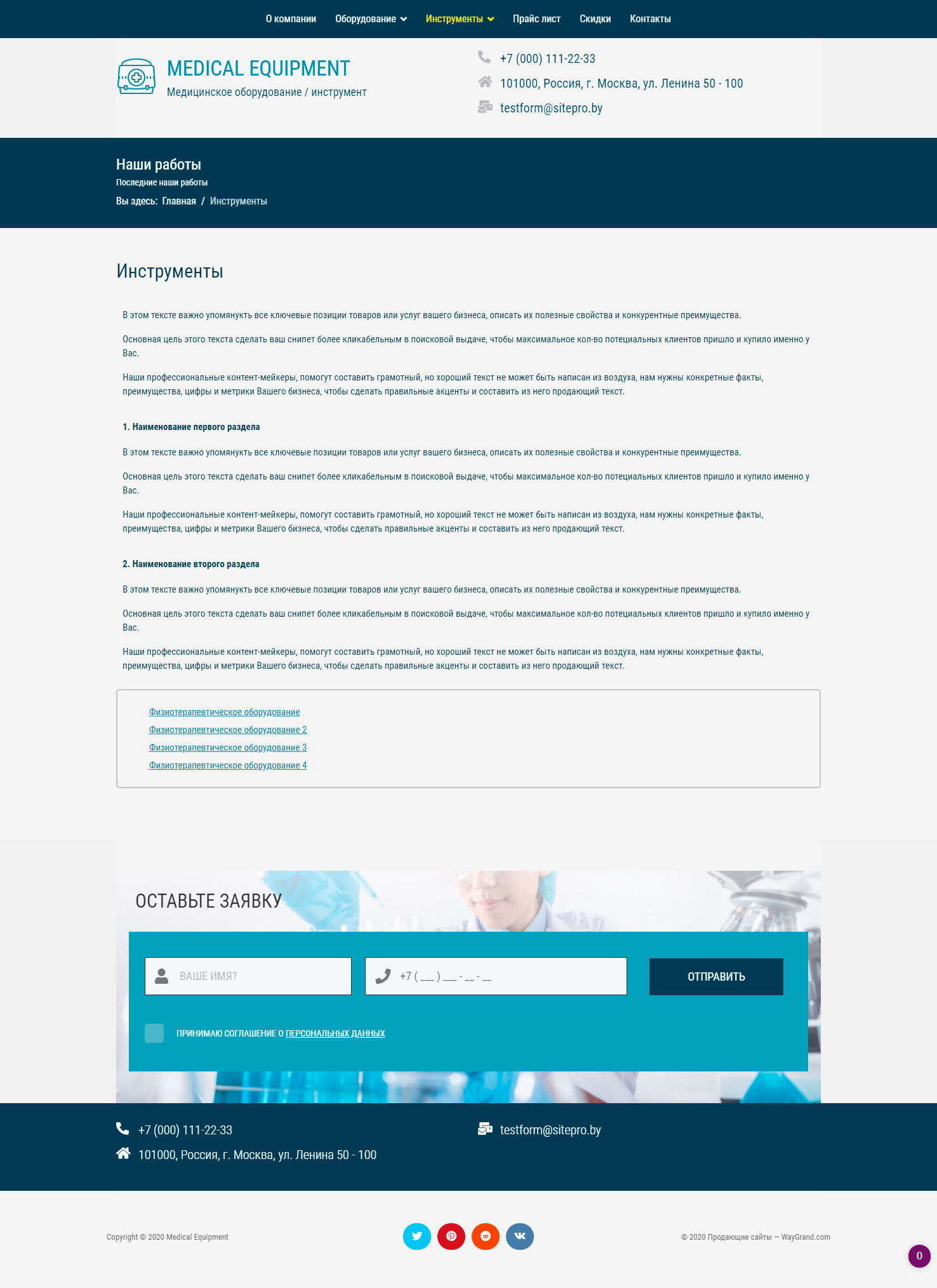 Закажите готовый продающий сайт визитка #1029301 в Петрозаводске за 5-7 дня «под ключ»: свёрстан, отрисован и готов к рекламе. Тематика шаблона «Медицинское оборудование / инструмент».