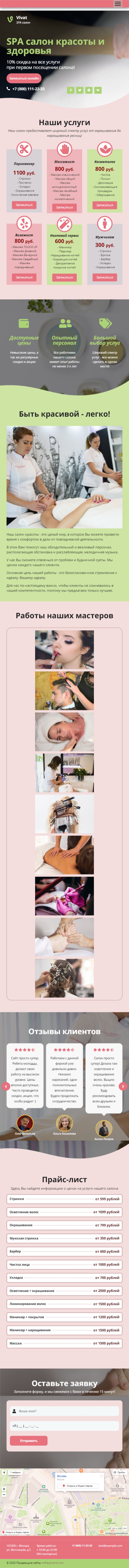 Закажите готовый продающий сайт лендинг #1101201 в Петрозаводске за 1-3 дня «под ключ»: свёрстан, отрисован и готов к рекламе. Тематика шаблона «SPA салон красоты».