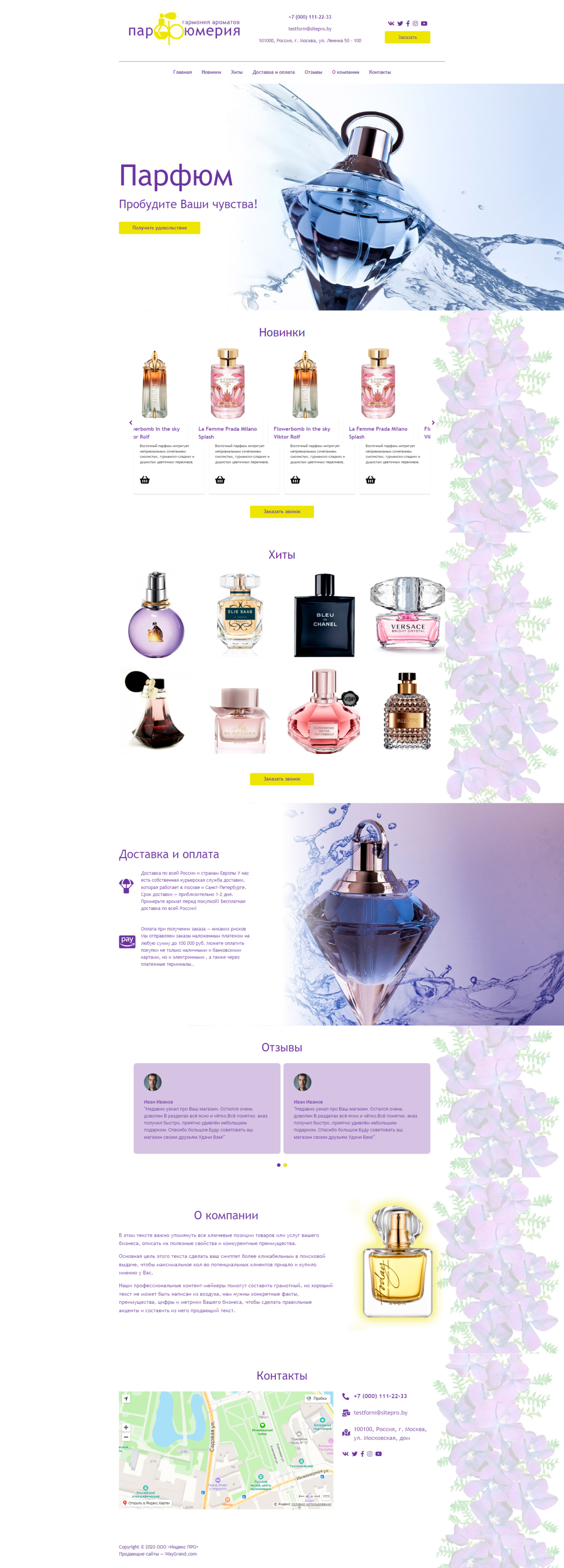 Закажите готовый продающий сайт лендинг #1030202 в Петрозаводске за 1-3 дня «под ключ»: свёрстан, отрисован и готов к рекламе. Тематика шаблона «Парфюмерия».
