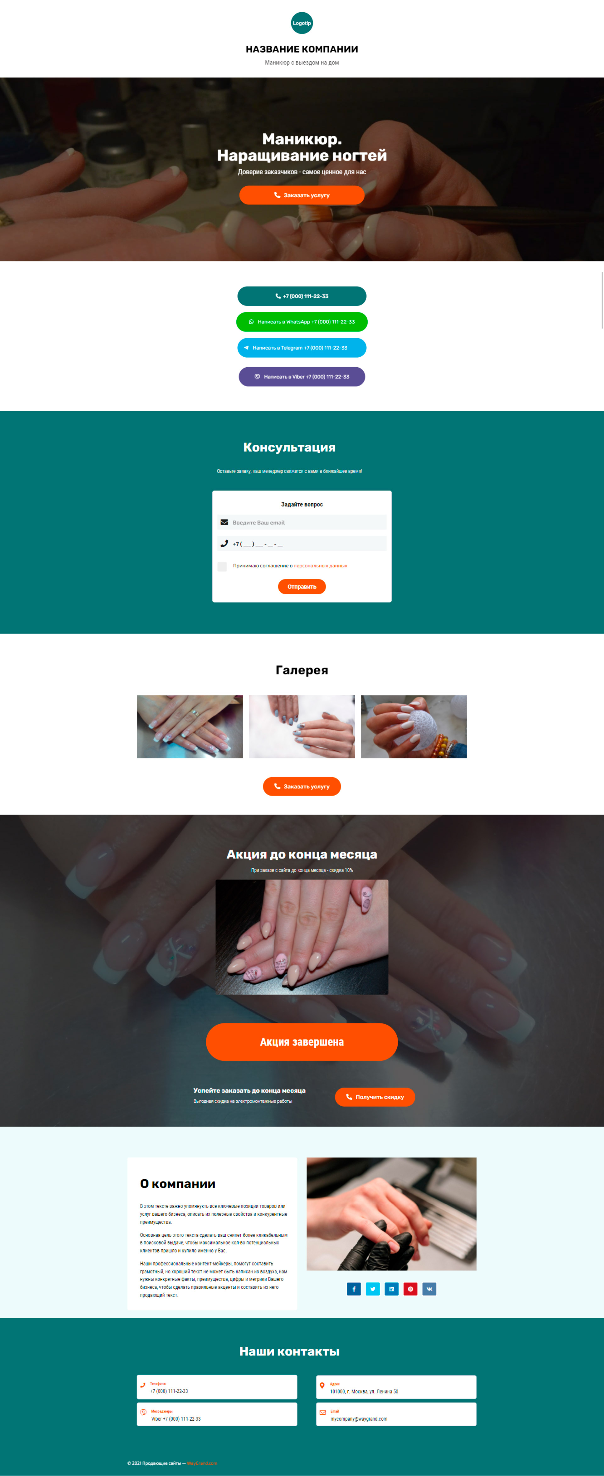 Закажите готовый продающий сайт визитка #1107101 в Петрозаводске за 5-7 дня «под ключ»: свёрстан, отрисован и готов к рекламе. Тематика шаблона «Маникюр. Наращивание ногтей».