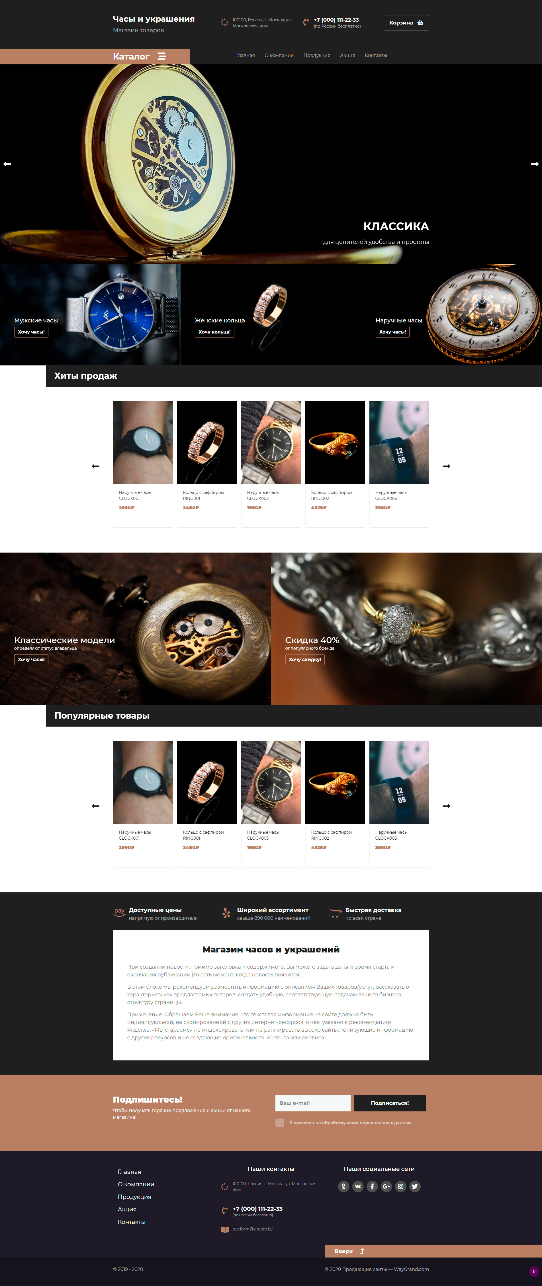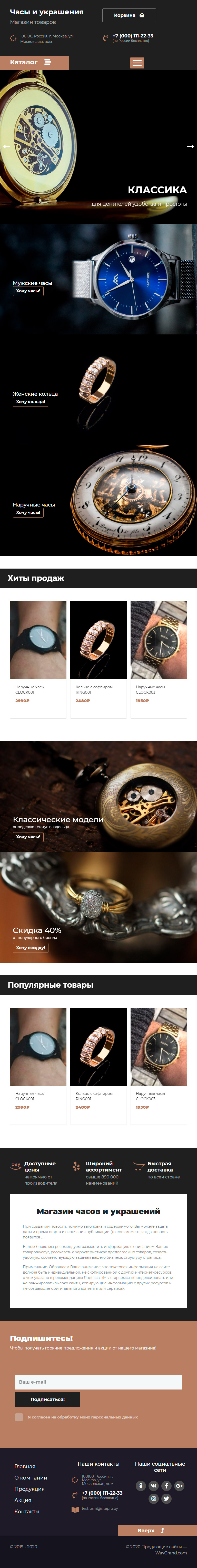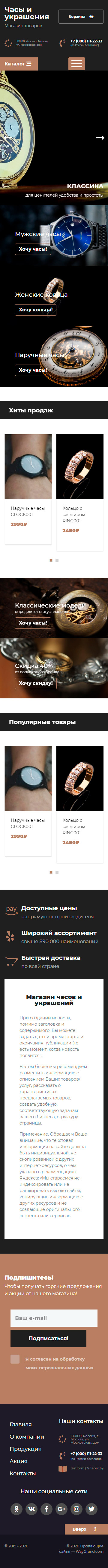 Закажите готовый продающий сайт лендинг #2437201 в Петрозаводске за 1-3 дня «под ключ»: свёрстан, отрисован и готов к рекламе. Тематика шаблона «Часы и украшения».