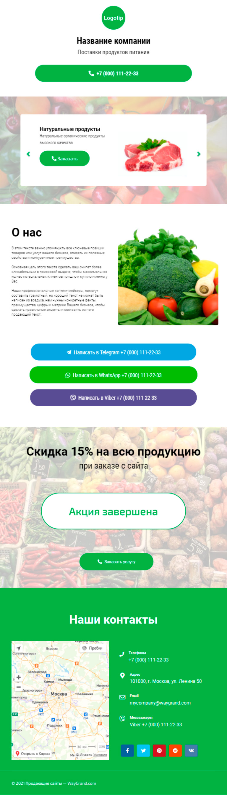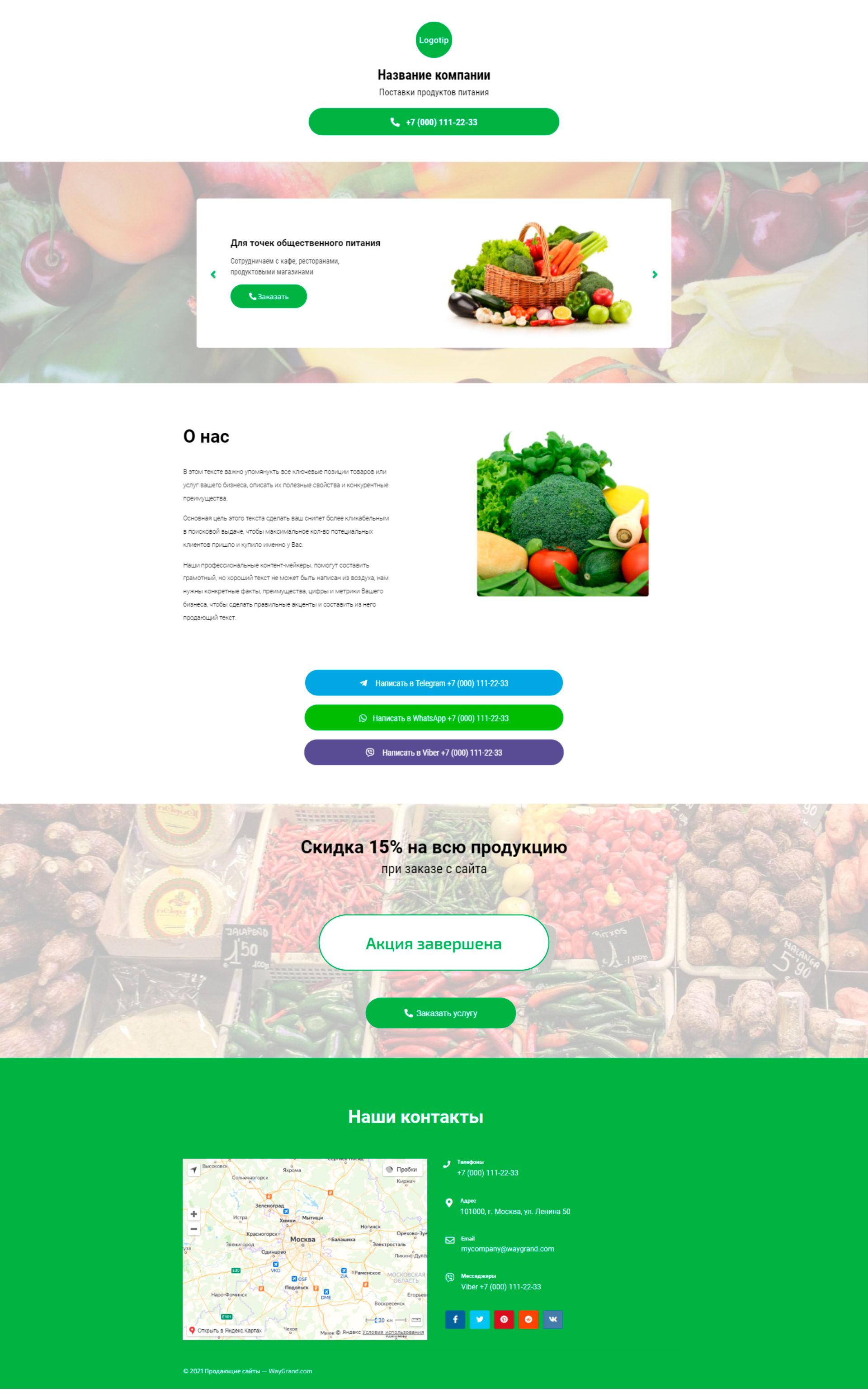 Закажите готовый продающий сайт визитка #1723101 в Петрозаводске за 5-7 дня «под ключ»: свёрстан, отрисован и готов к рекламе. Тематика шаблона «Поставки продуктов питания».