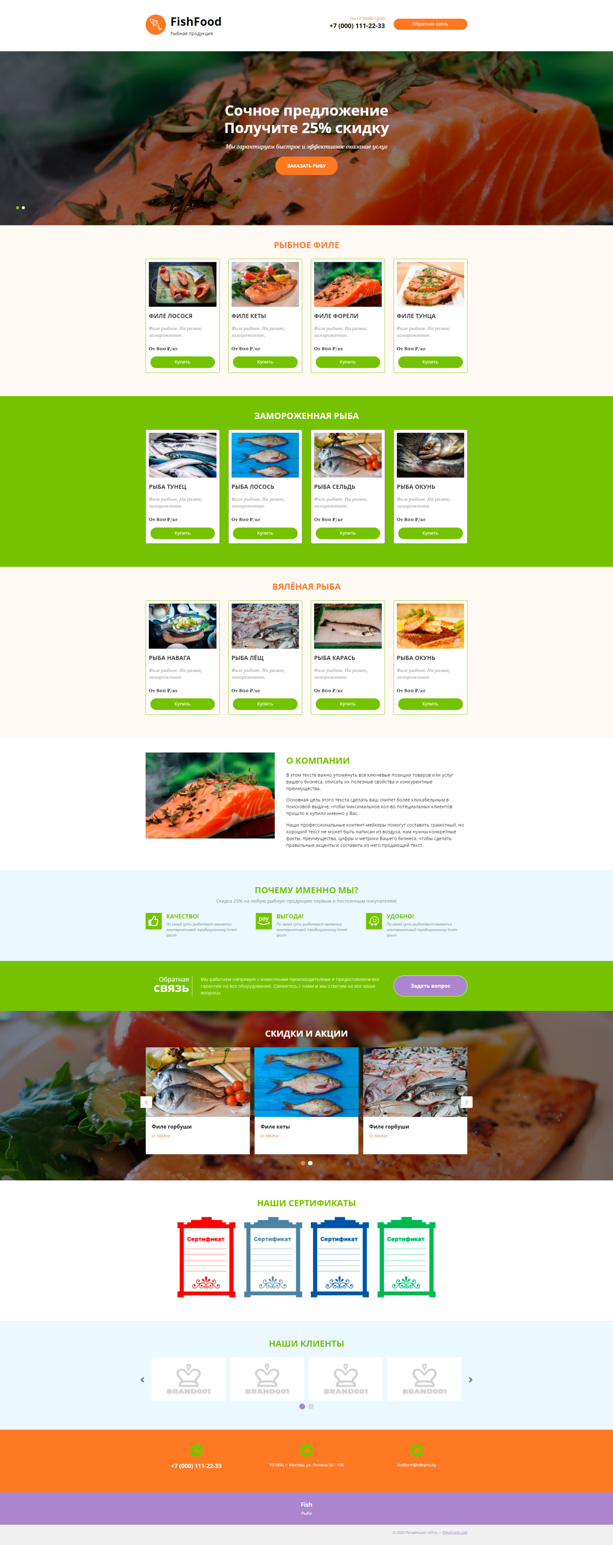Закажите готовый продающий сайт лендинг #1731202 в Петрозаводске за 1-3 дня «под ключ»: свёрстан, отрисован и готов к рекламе. Тематика шаблона «Рыбная продукция».