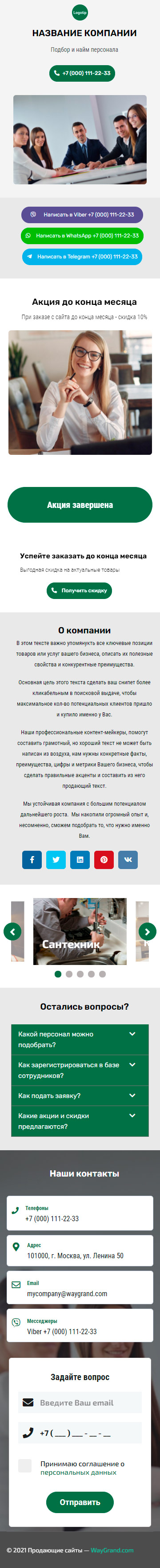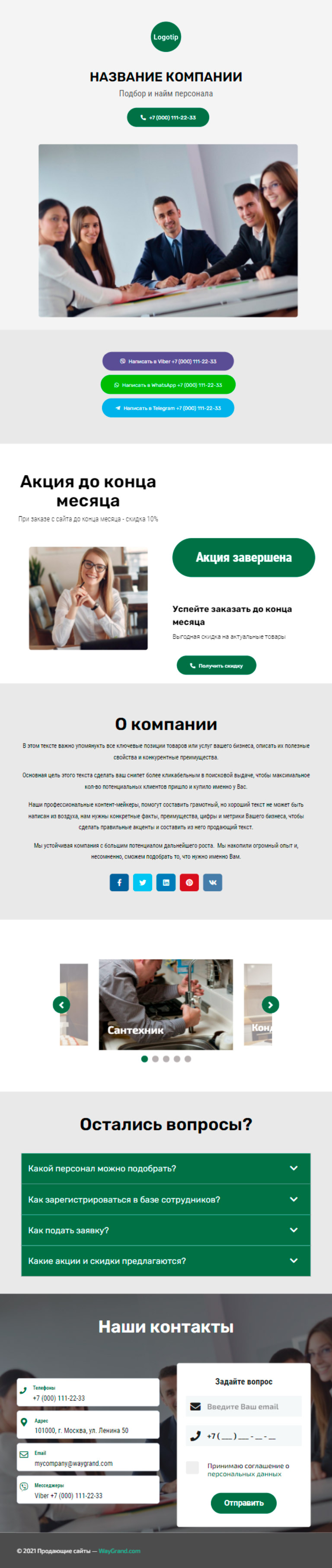 Закажите готовый продающий сайт визитка #1415101 в Петрозаводске за 5-7 дня «под ключ»: свёрстан, отрисован и готов к рекламе. Тематика шаблона «Подбор и найм персонала».