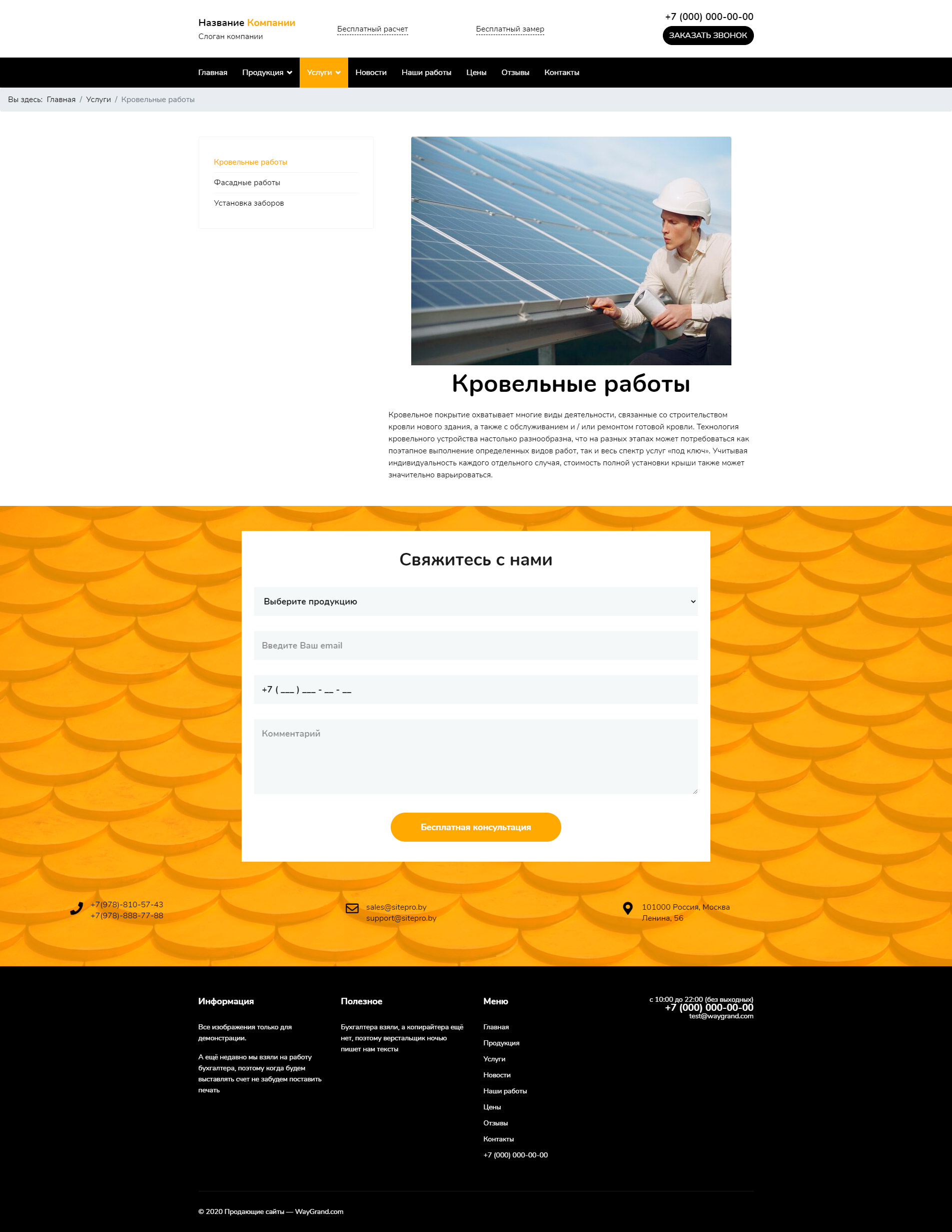 Закажите готовый продающий сайт визитка #2132301 в Петрозаводске за 5-7 дня «под ключ»: свёрстан, отрисован и готов к рекламе. Тематика шаблона «Заборы, кровля, фасады».