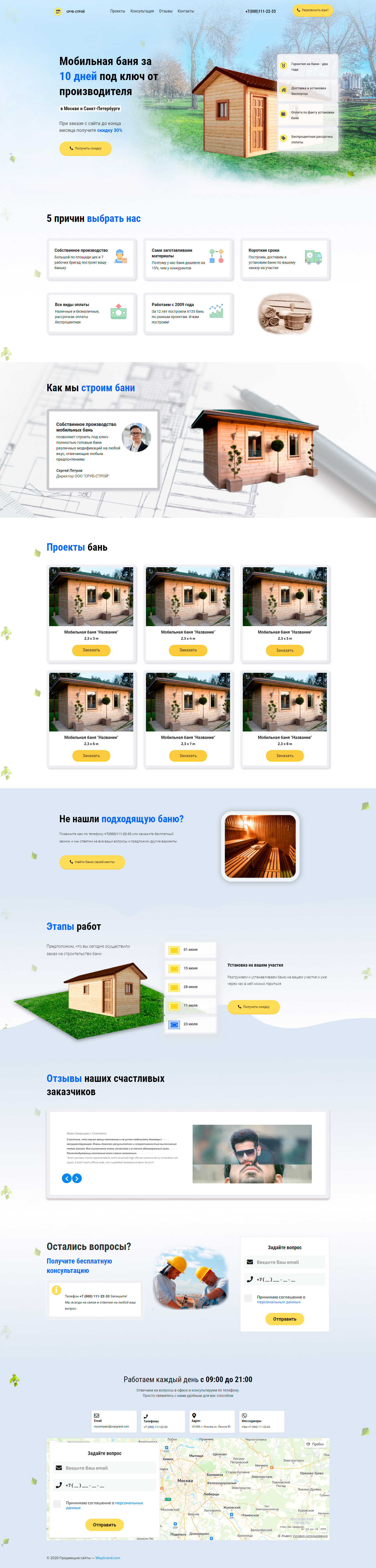 Закажите готовый продающий сайт лендинг #2172203 в Петрозаводске за 1-3 дня «под ключ»: свёрстан, отрисован и готов к рекламе. Тематика шаблона «Мобильная баня».