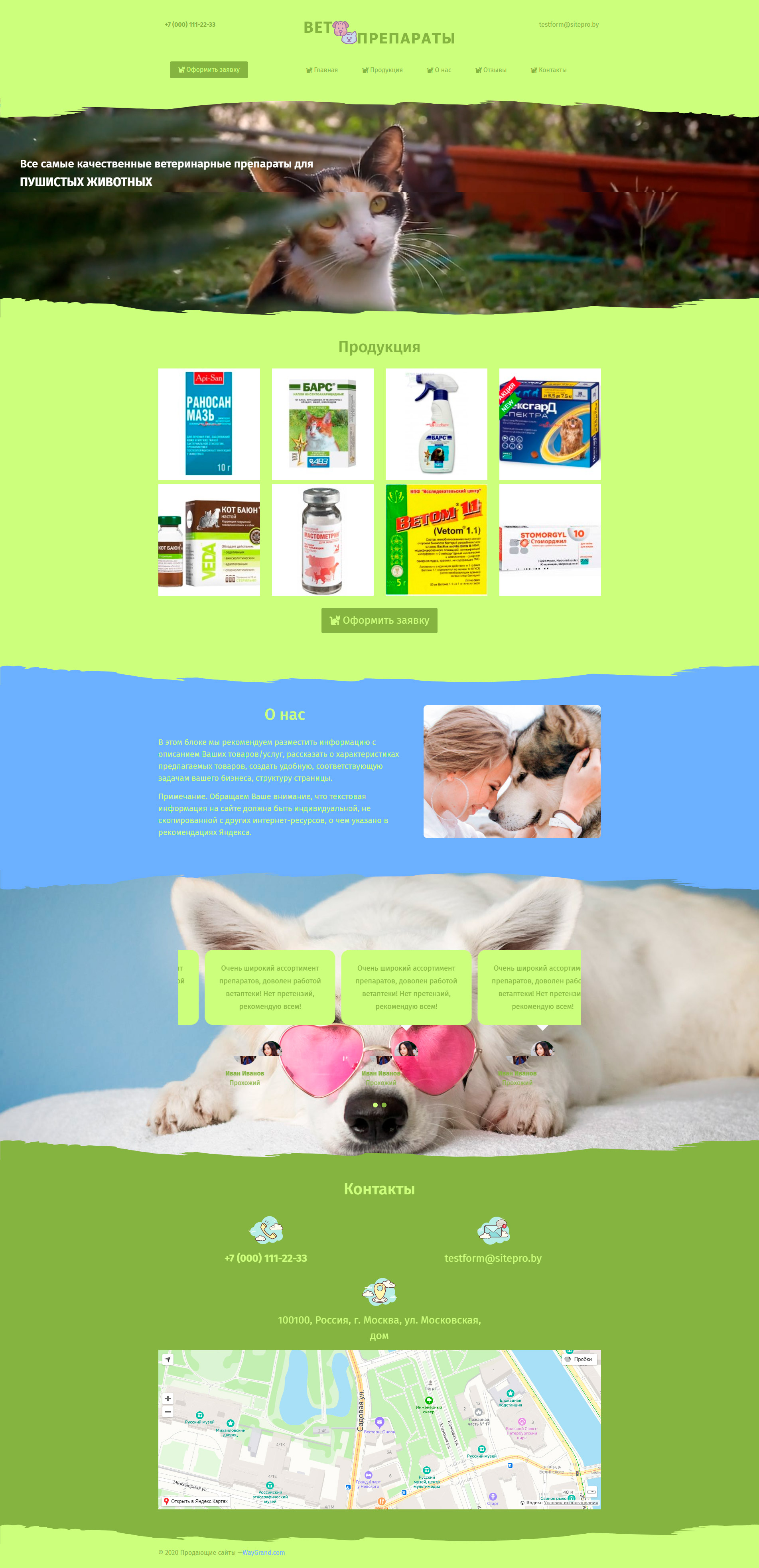 Закажите готовый продающий сайт лендинг #2305202 в Петрозаводске за 1-3 дня «под ключ»: свёрстан, отрисован и готов к рекламе. Тематика шаблона «Ветпрепараты».