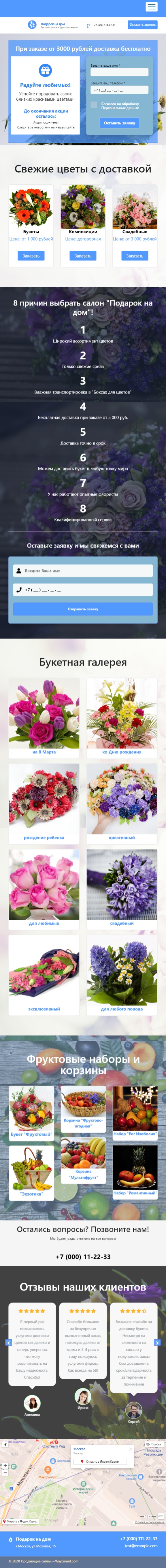 Закажите готовый продающий сайт лендинг #2404203 в Петрозаводске за 1-3 дня «под ключ»: свёрстан, отрисован и готов к рекламе. Тематика шаблона «Доставка букетов на дом».