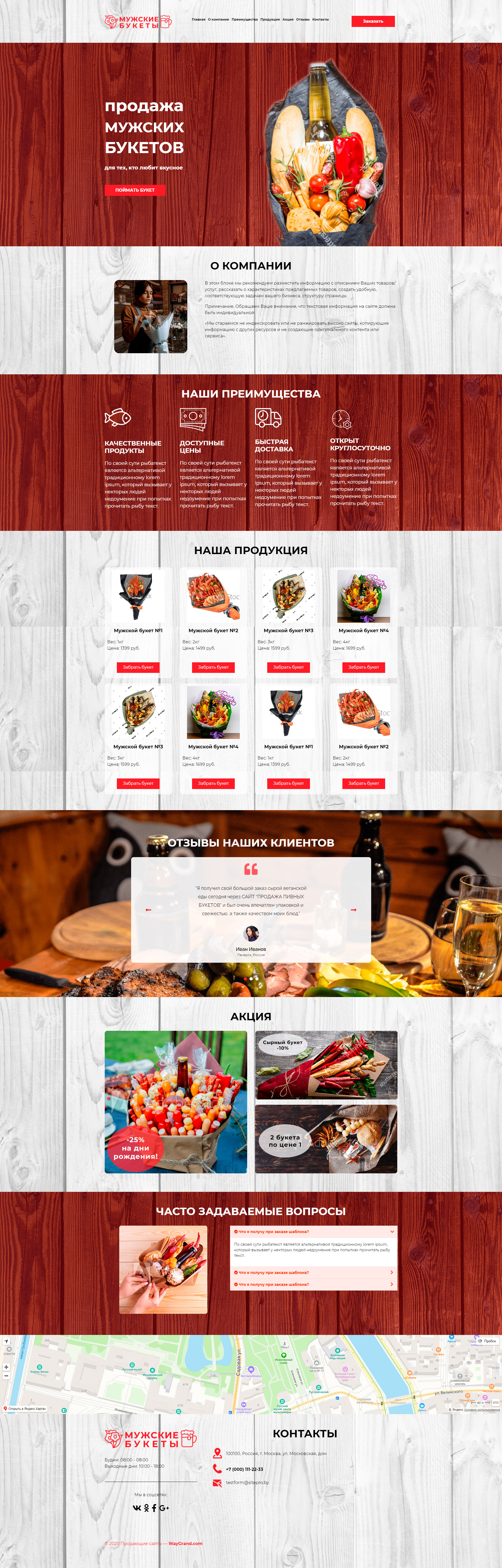 Закажите готовый продающий сайт лендинг #2404204 в Петрозаводске за 1-3 дня «под ключ»: свёрстан, отрисован и готов к рекламе. Тематика шаблона «Мужские букеты».