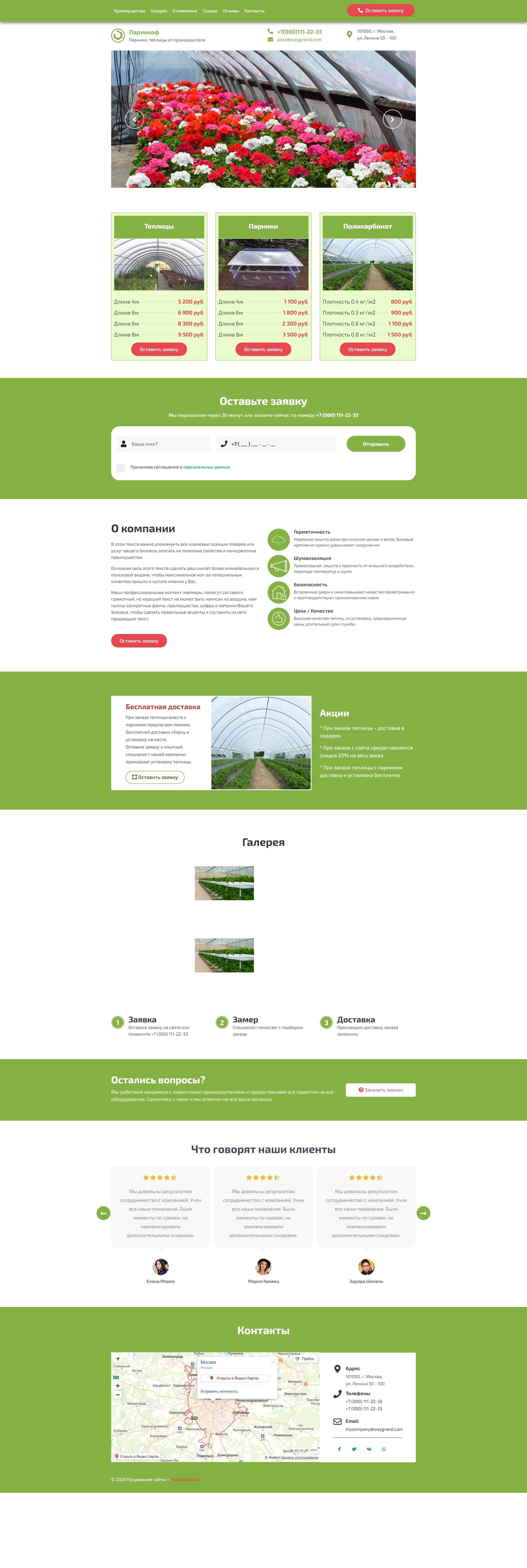 Закажите готовый продающий сайт лендинг #2624202 в Петрозаводске за 1-3 дня «под ключ»: свёрстан, отрисован и готов к рекламе. Тематика шаблона «Парники и теплицы».