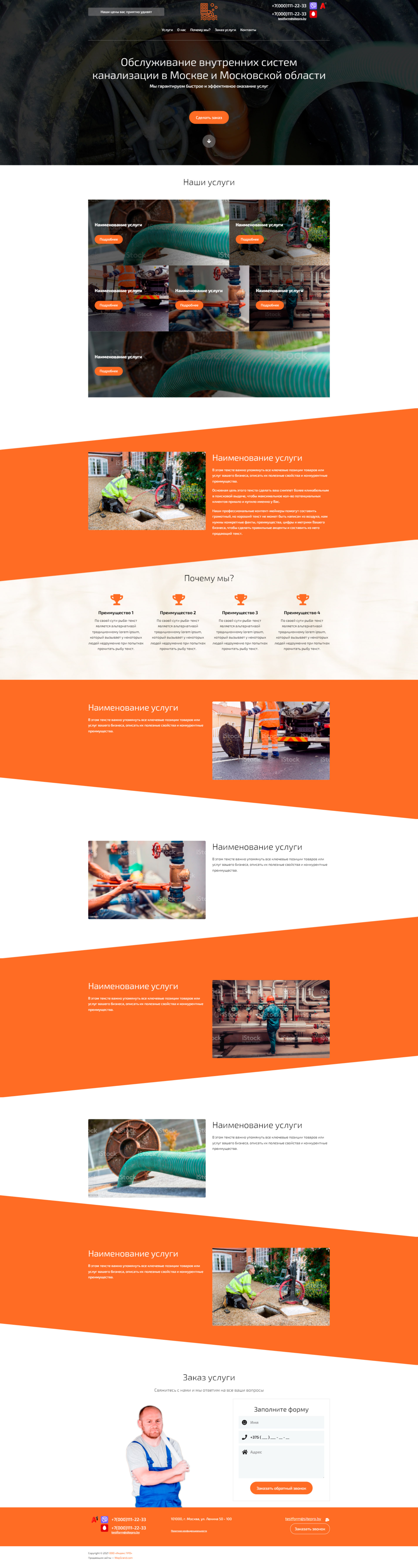 Закажите готовый продающий сайт лендинг #2137202 в Петрозаводске за 1-3 дня «под ключ»: свёрстан, отрисован и готов к рекламе. Тематика шаблона «Обслуживание внутренних систем канализации».