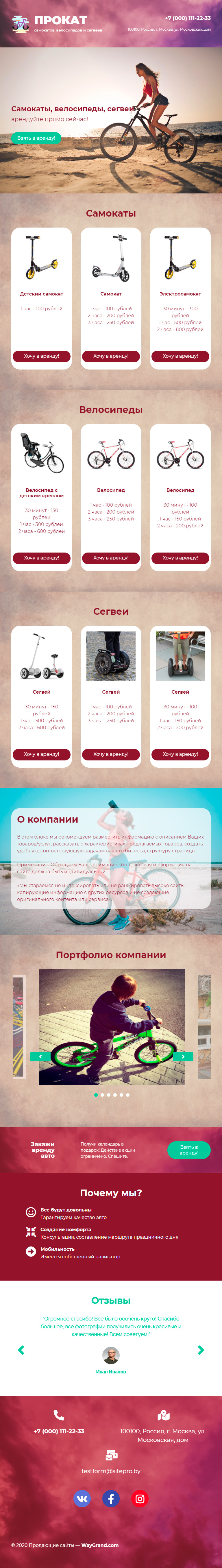 Закажите готовый продающий сайт лендинг #1907201 в Петрозаводске за 1-3 дня «под ключ»: свёрстан, отрисован и готов к рекламе. Тематика шаблона «Прокат самокатов и велосипедов».