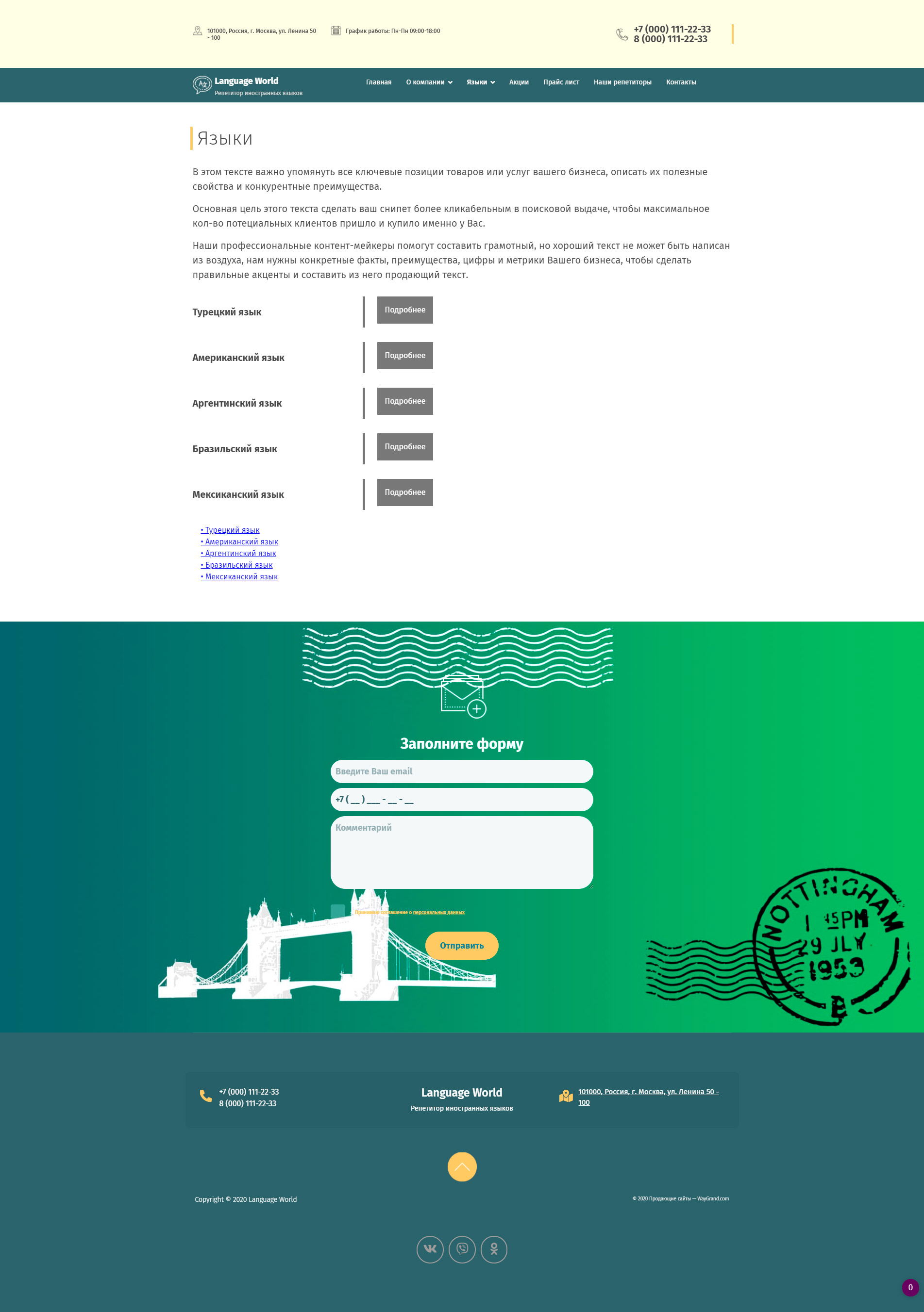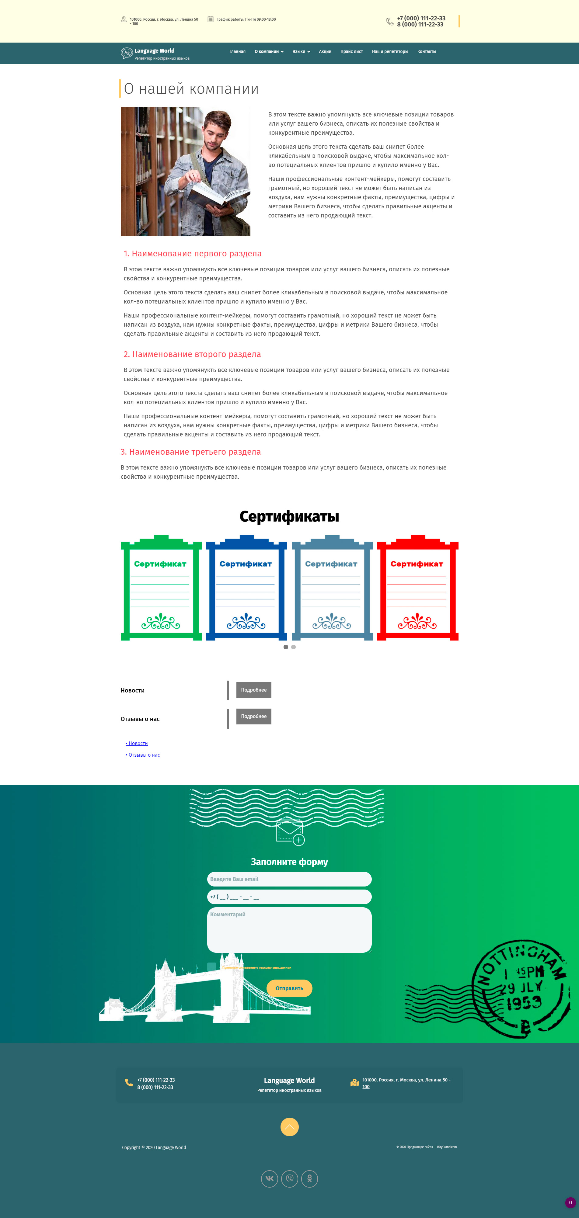 Закажите готовый продающий сайт визитка #1448302 в Петрозаводске за 5-7 дня «под ключ»: свёрстан, отрисован и готов к рекламе. Тематика шаблона «Репетитор иностранных языков».