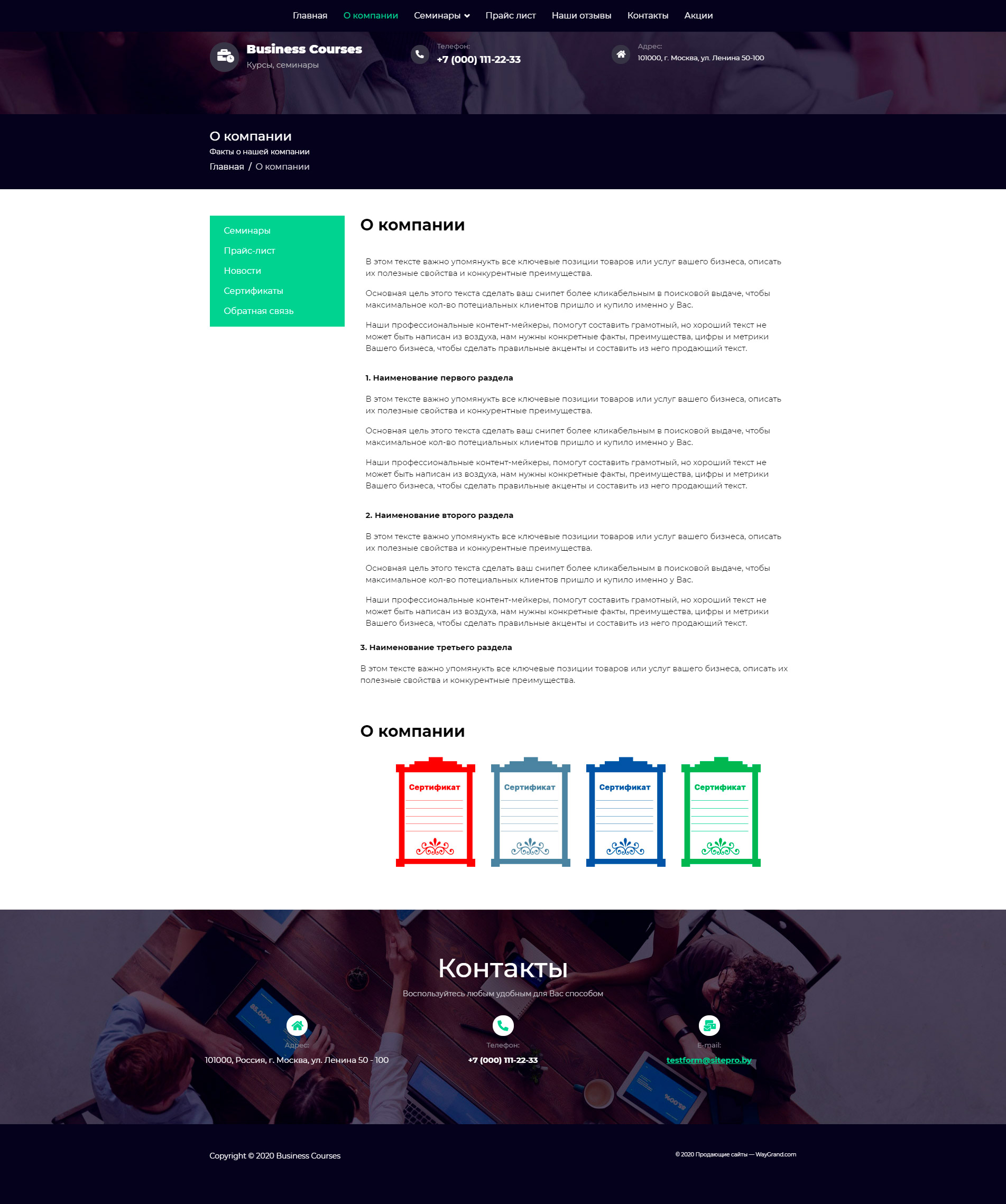 Закажите готовый продающий сайт визитка #1448303 в Петрозаводске за 5-7 дня «под ключ»: свёрстан, отрисован и готов к рекламе. Тематика шаблона «Бизнес курсы и семинары».