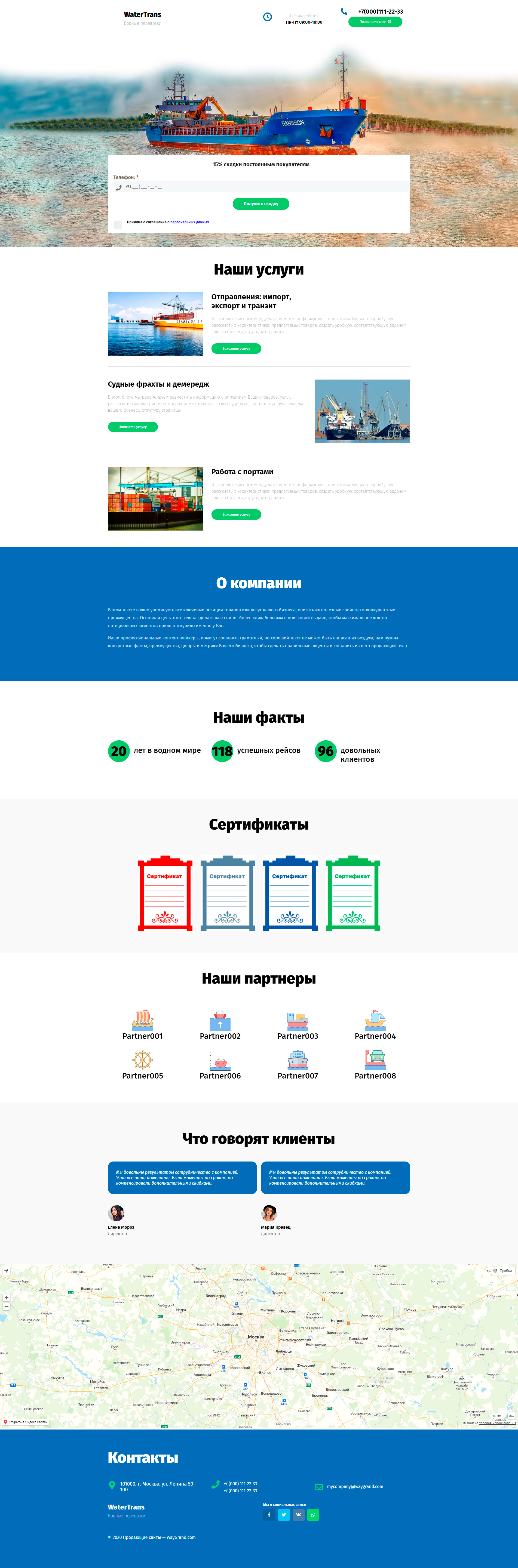 Закажите готовый продающий сайт лендинг #1908201 в Петрозаводске за 1-3 дня «под ключ»: свёрстан, отрисован и готов к рекламе. Тематика шаблона «Морские перевозки».
