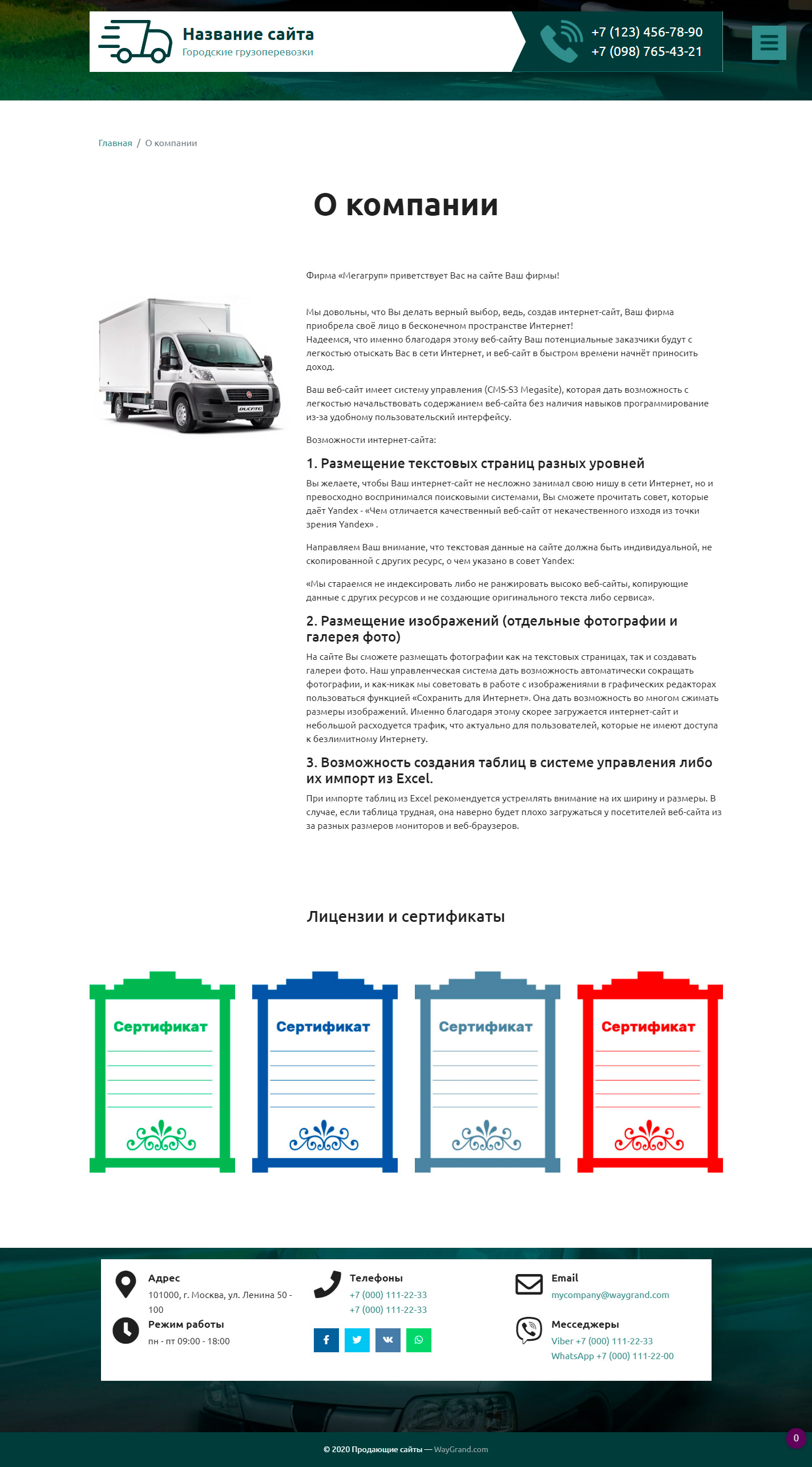 Закажите готовый продающий сайт визитка #2515302 в Петрозаводске за 5-7 дня «под ключ» по доступным ценам на WayGrand: свёрстан, отрисован и готов к рекламе. Тематика шаблона «Городские грузоперевозки».