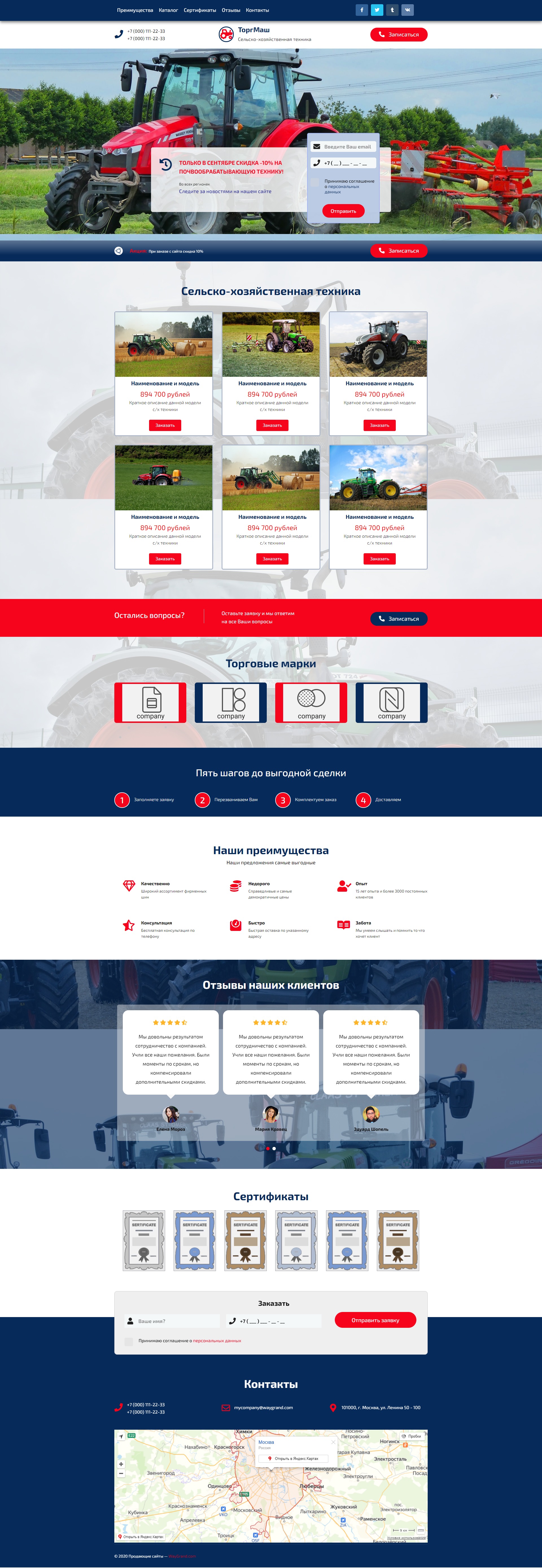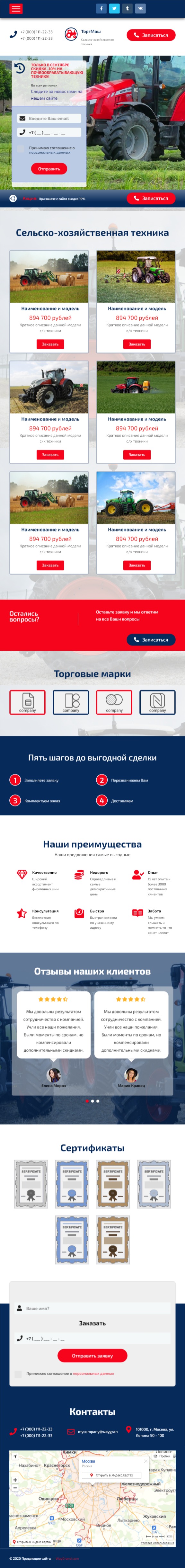 Закажите готовый продающий сайт лендинг #2553202 в Петрозаводске за 1-3 дня «под ключ»: свёрстан, отрисован и готов к рекламе. Тематика шаблона «Сельско-хозяйственная техника».